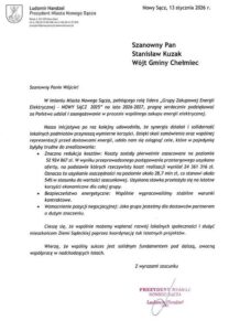 Dziękuję Stanisław Kuzak – Wójt Gminy Chełmiec za udział i zaangażowanie w procesie wspólnego zakupu energii elektrycznej.