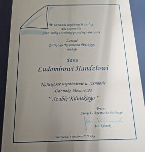 Otrzymanie najwyższego wyróżnienia Cechu Rzemiosł Różnych – Odznaki Honorowej „Szabli Kilińskiego” – jest dla mnie wielkim zaszczytem i niezwykle poruszającym momentem.
